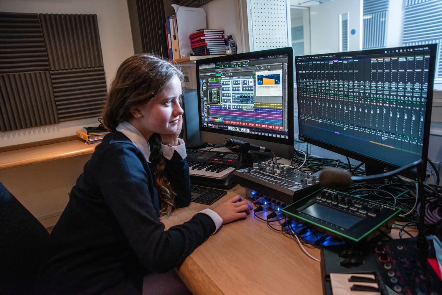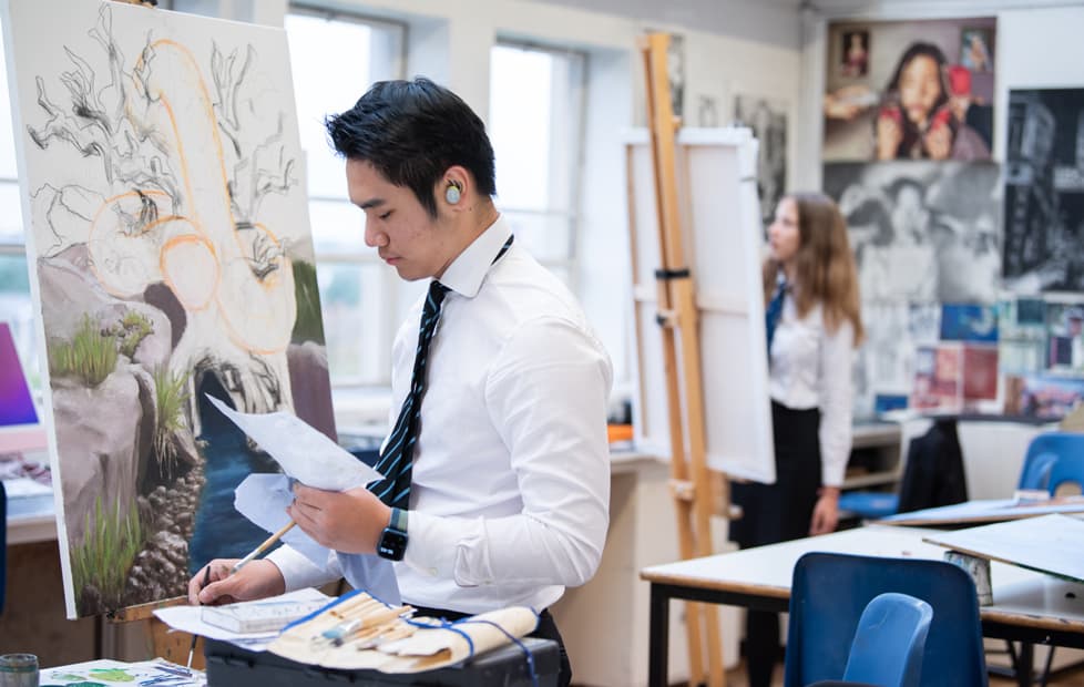 Pupils learn in subject-specific facilities, including engaging science labs, a design and technology workshop, and dedicated art and music studios.