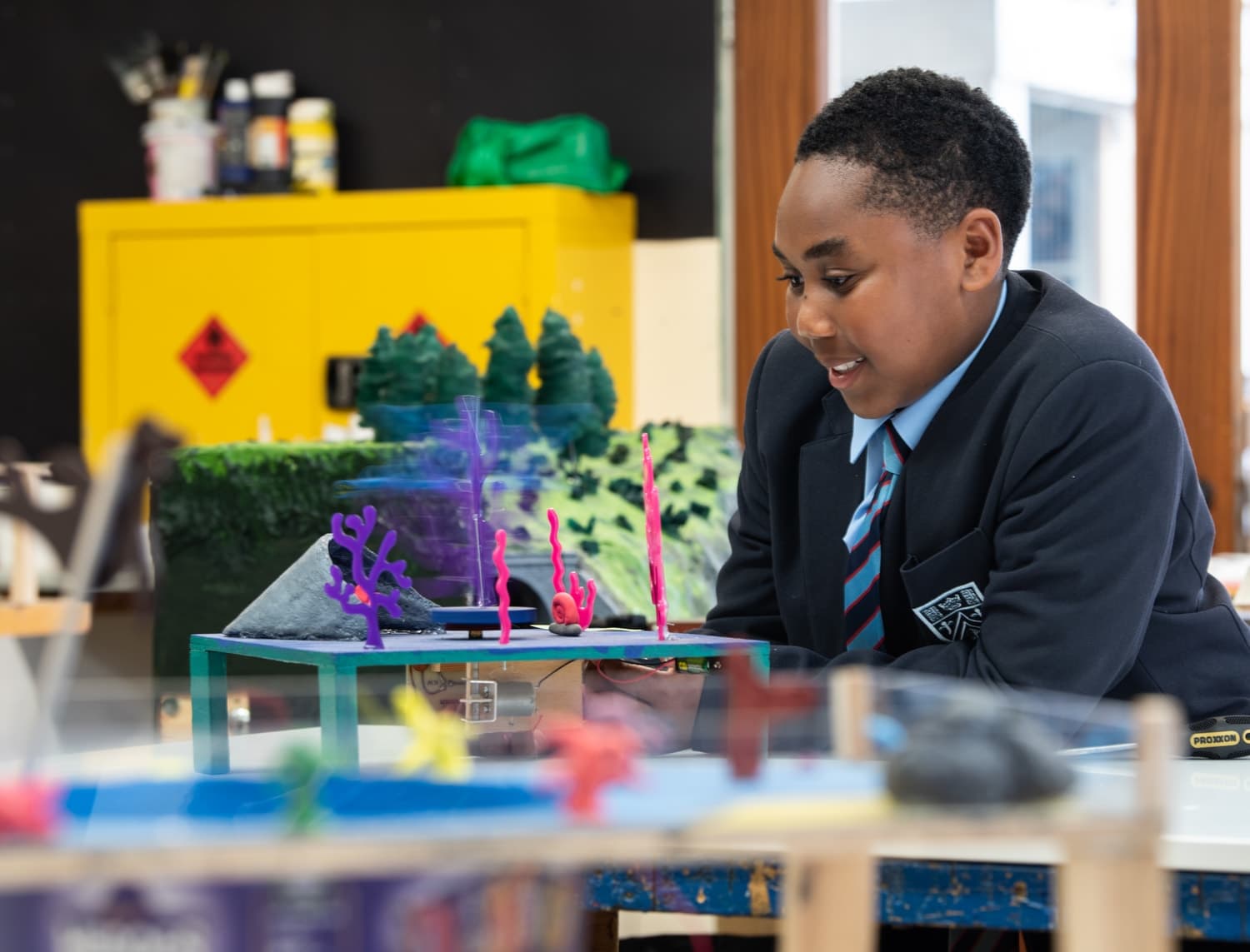 The visual arts encourage children to think creatively, make decisions, experiment and explore, and make discoveries of their own. Each year pupils will experience workshops run by visiting artists. These offer possibilities for creative work that extend beyond the normal range. Learning is enhanced through shared experiences, perceptions, cultural backgrounds and working methods.