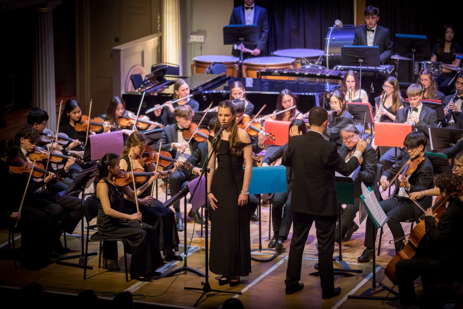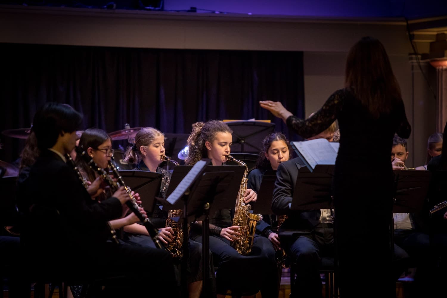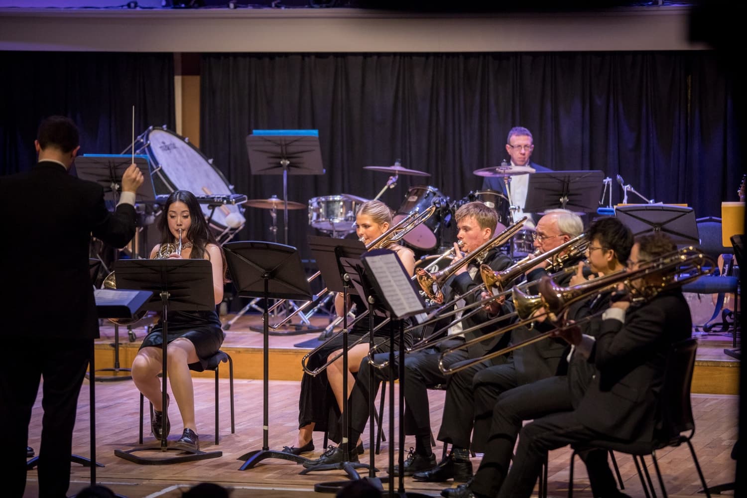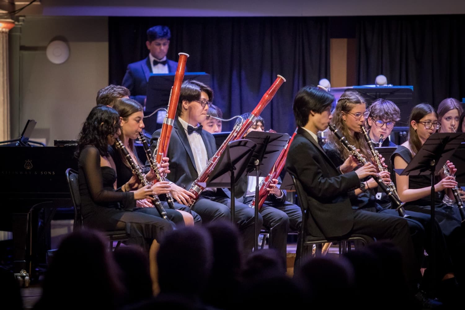 A wide variety of genres and diversity of composers featured in the programme, including classical Beethoven with his Egmont Overture (Antonia our student conductor), Brahms and Moszkowski virtuoso violin works, Argentine Piazzolla (with oboe soloist Francis) and Yiddish Ragmusik with the Concert Band, Henry Mancini and the Beatles with our Big Band, and two African-American composers with our Strings Ensemble – Florence Price’s ‘Adoration’ (in a new arrangement), and the Sinfonietta of African-American composer Coleridge-Taylor Perkinson.